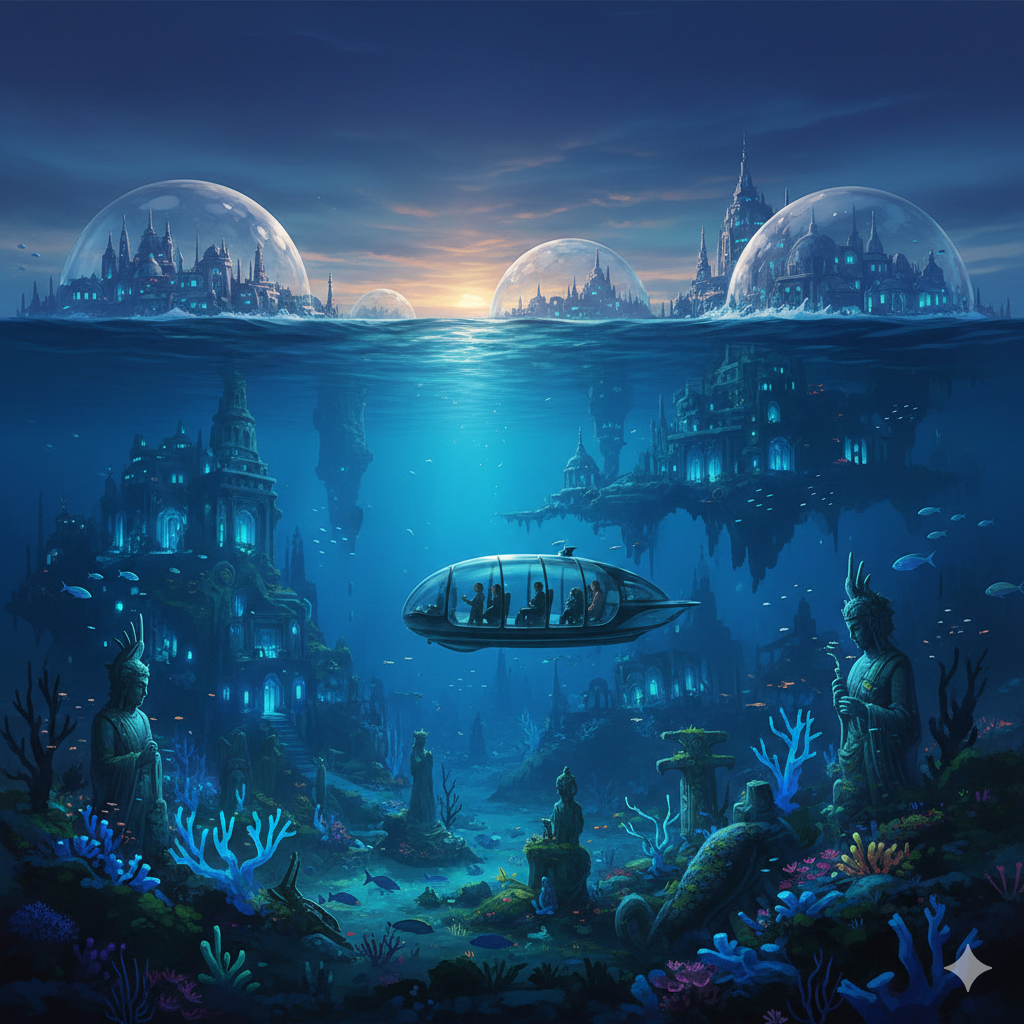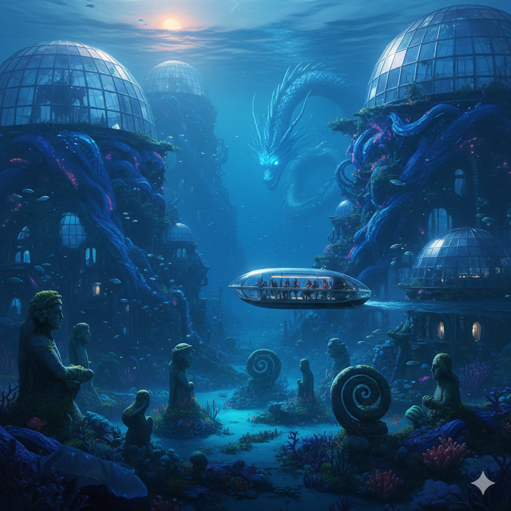 Plongez dans l'élégance sous-marine. Nos suites de verre et de corail vous offrent un spectacle bioluminescent unique au monde, entre vestiges antiques et jardins de pierre.